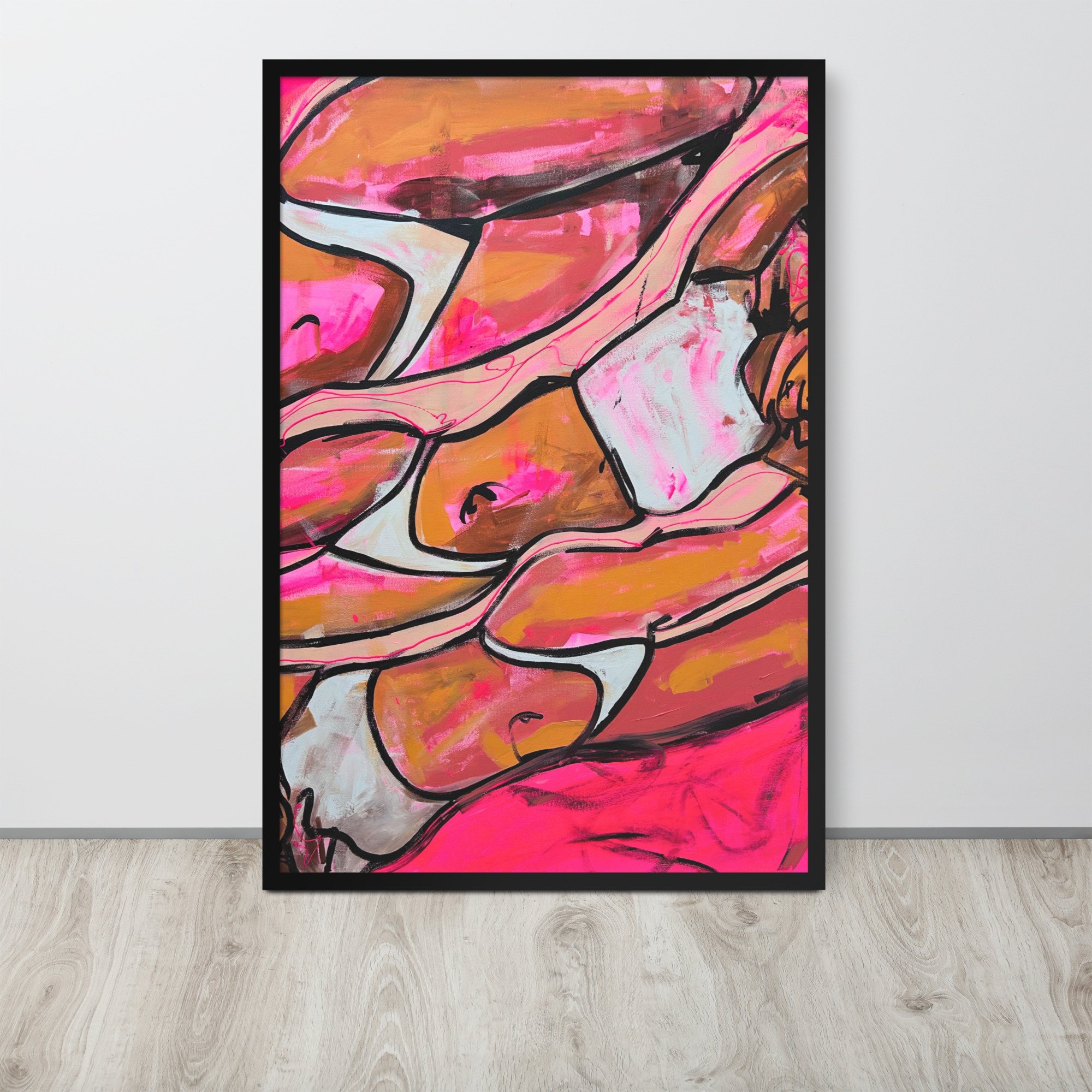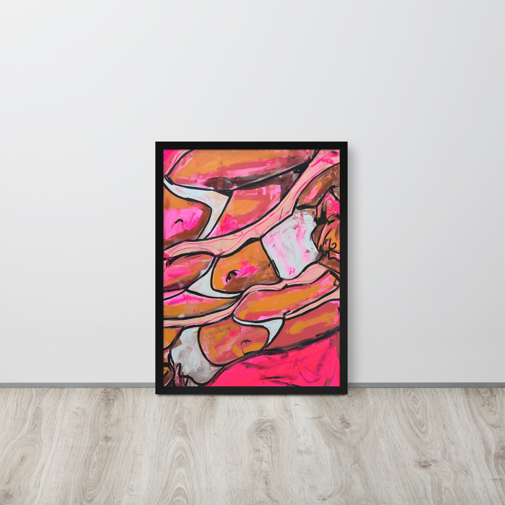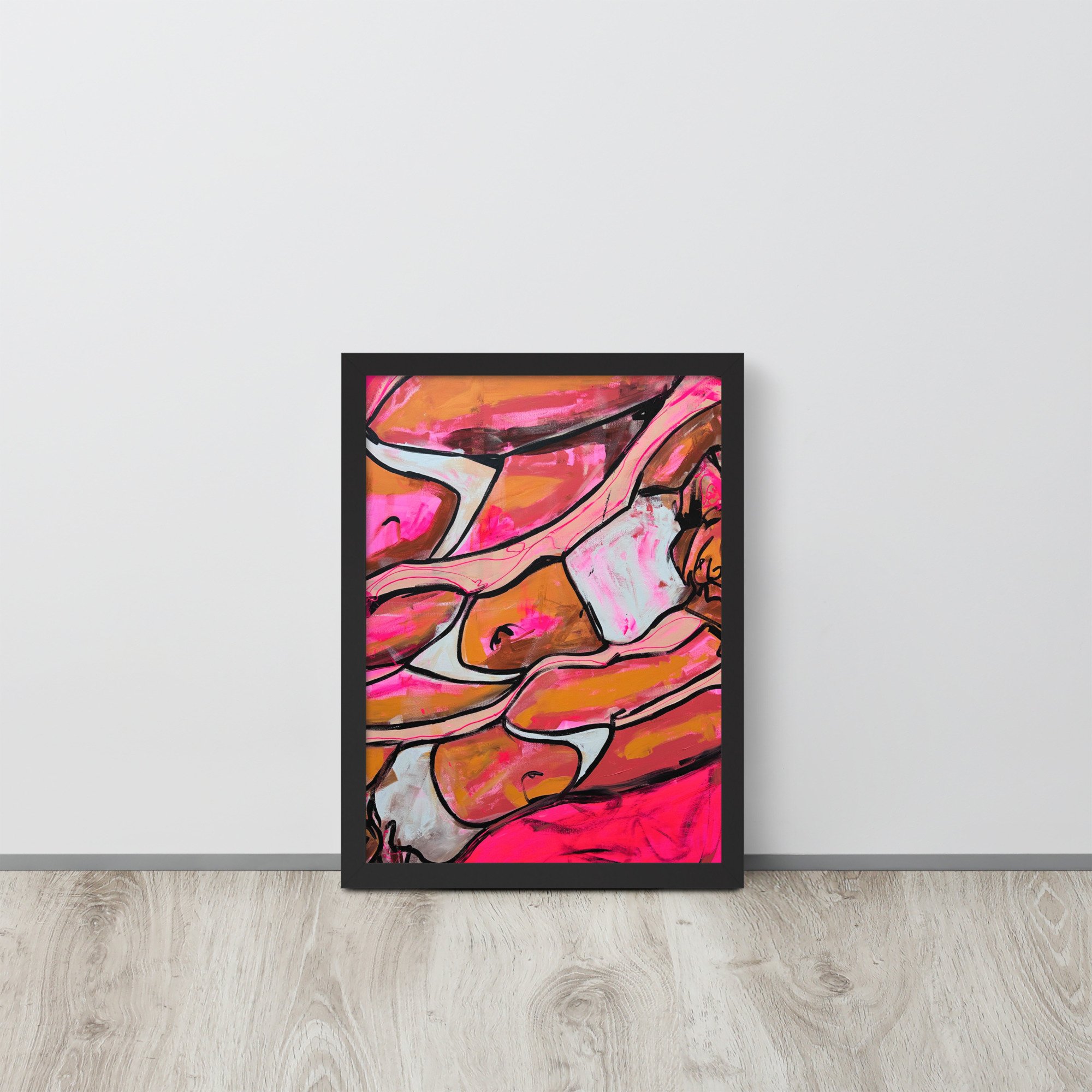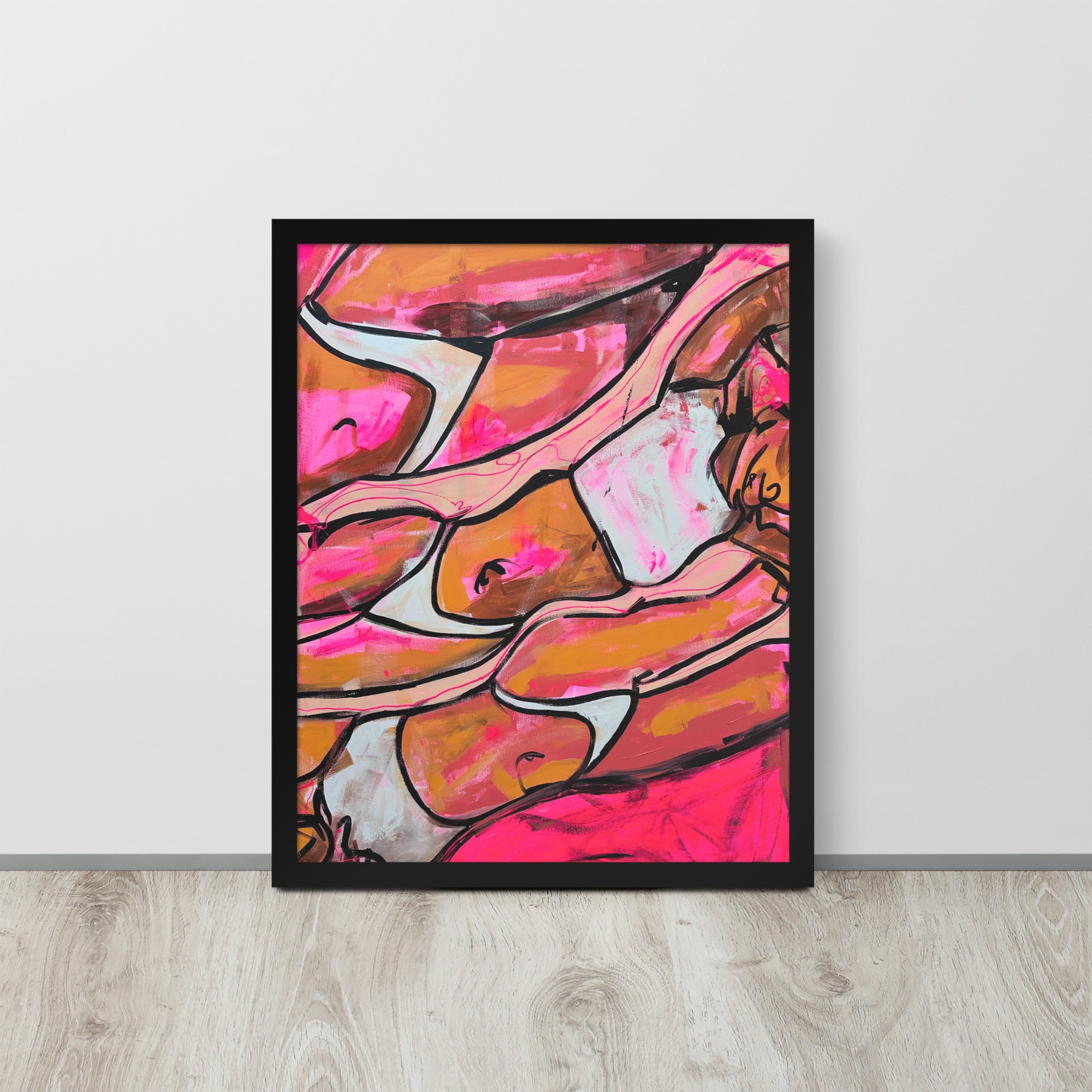 A warm, expressive study of the female form, this piece focuses on curve, repetition, and movement. Bold outlines and vibrant tones create a sense of heat and softness—an exploration of presence and quiet confidence.