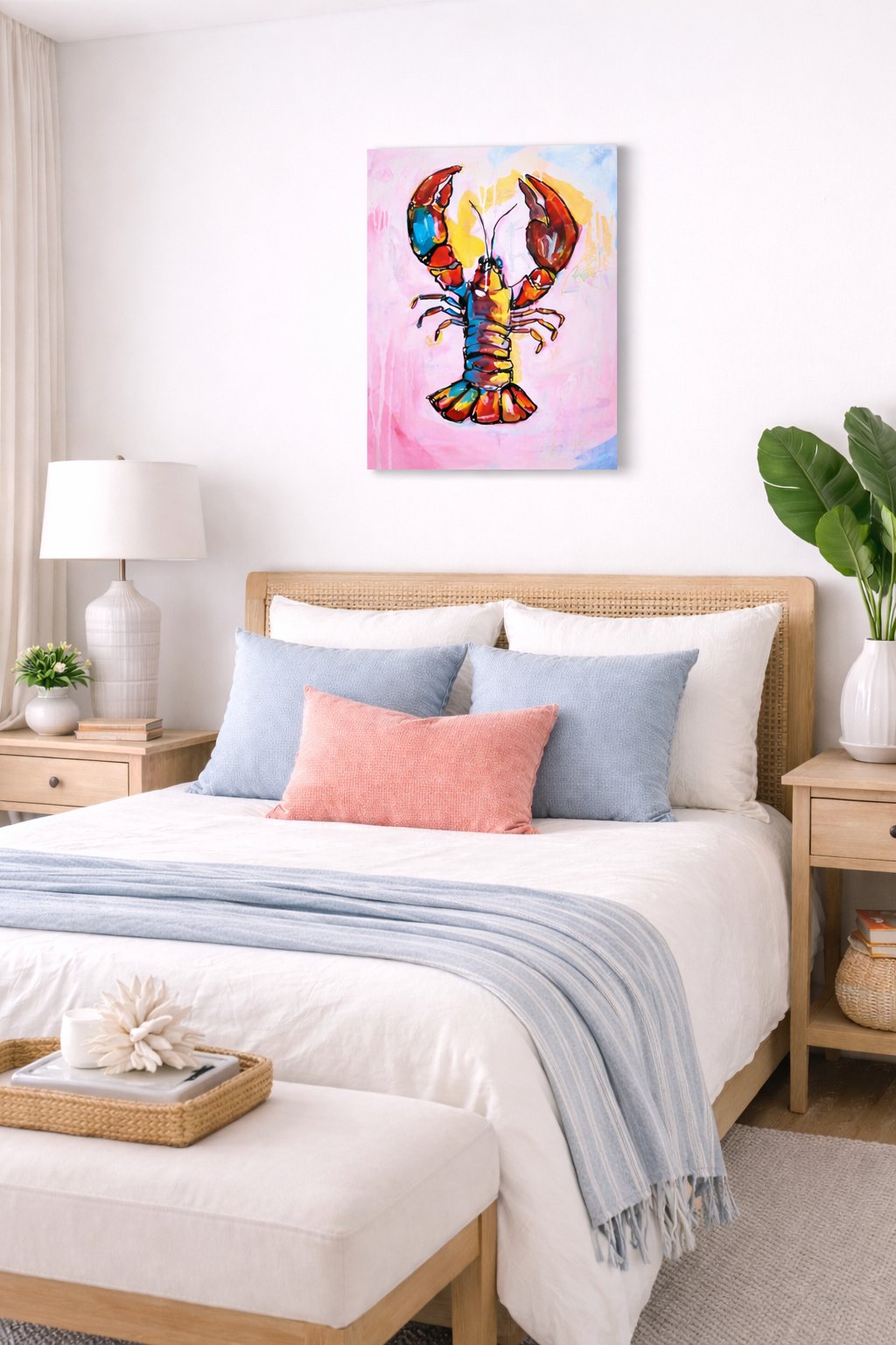 Bold, unapologetic, and impossible to ignore—Fresh Catch brings a classic Atlantic icon into a whole new light. Painted with expressive brushstrokes and layered, high-contrast color, this lobster feels less like seafood and more like personality on canvas.