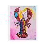 Set against a soft, abstract background of pinks, yellows, and blues, the piece balances energy with ease—like summer on the coast, reimagined through a vibrant, modern lens.